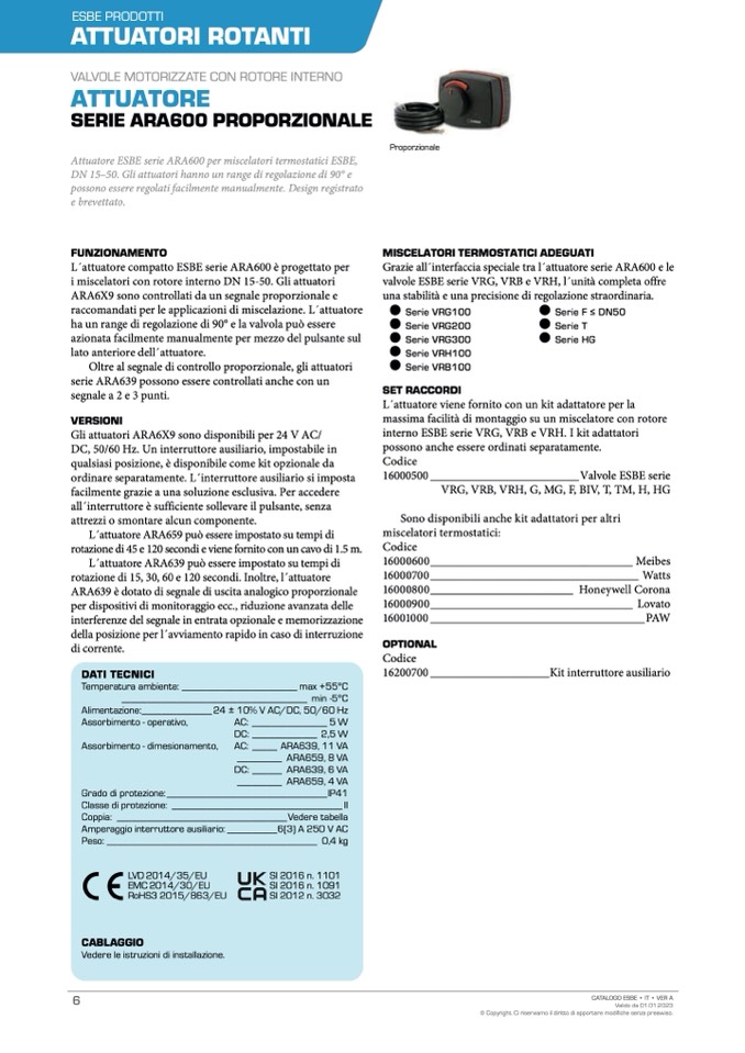 Attuatore ESBE serie ARA600 per miscelatori termostatici ESBE,