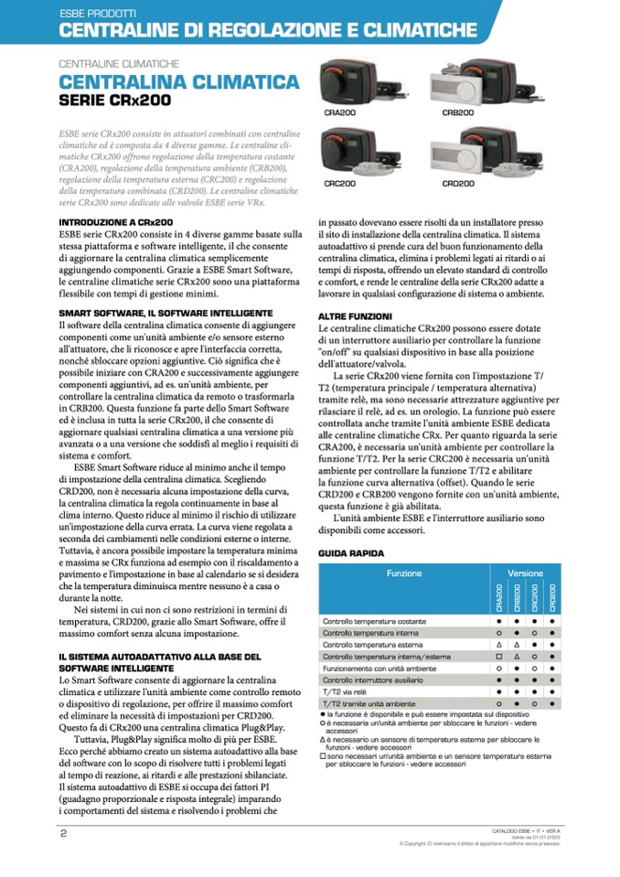 ESBE serie CRx200 consiste in 4 diverse gamme basate sulla