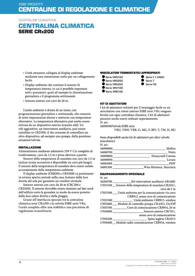 climatica serie CRx200 e la valvola ESBE serie VRx,