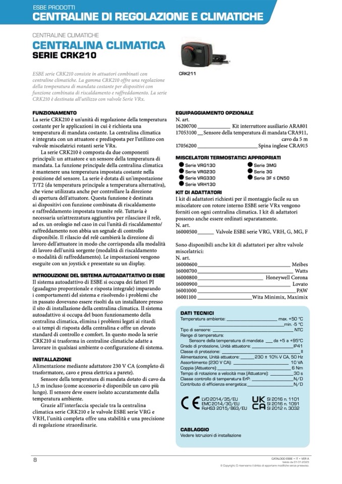 climatica serie CRK210 e le valvole ESBE serie VRG e