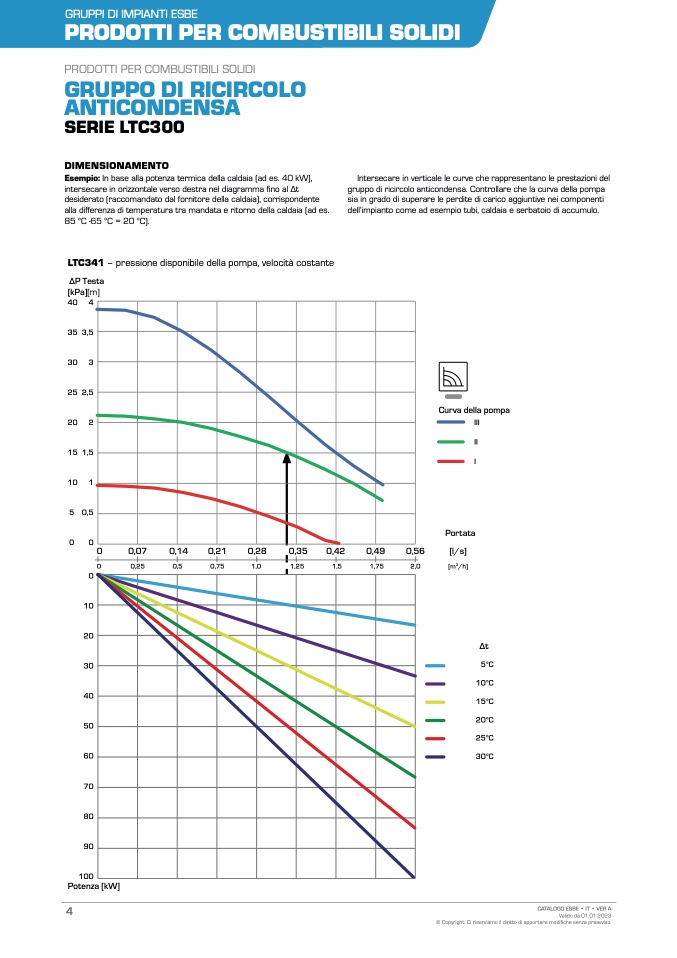 gruppo di ricircolo anticondensa. Controllare che la curva della pompa