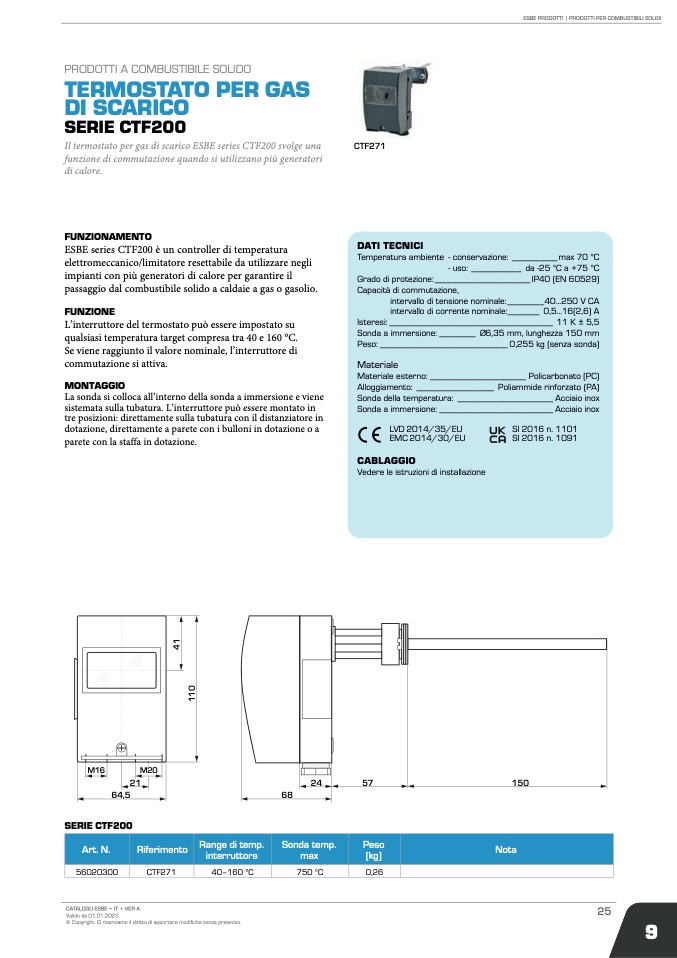 Il termostato per gas di scarico ESBE series CTF200 svolge una