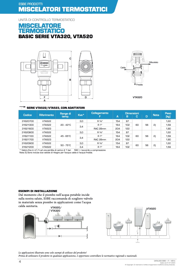 Prima di utilizzare il prodotto in qualsiasi applicazione, è opportuno controllare le normative regionali e nazionali.