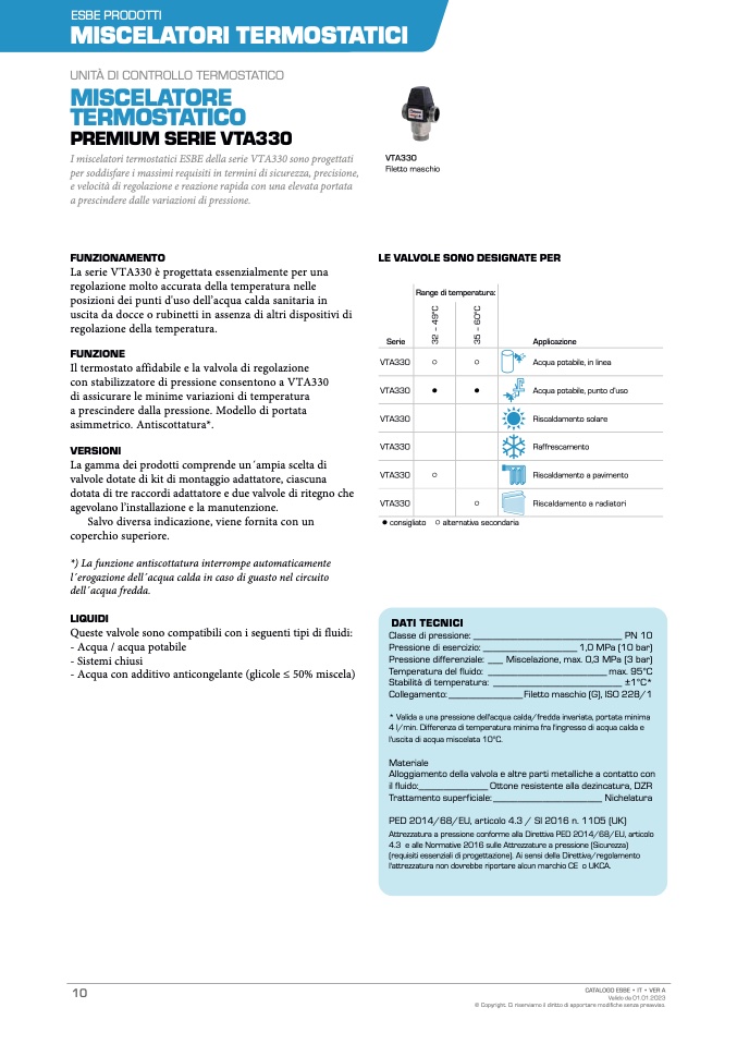 I miscelatori termostatici ESBE della serie VTA330 sono progettati