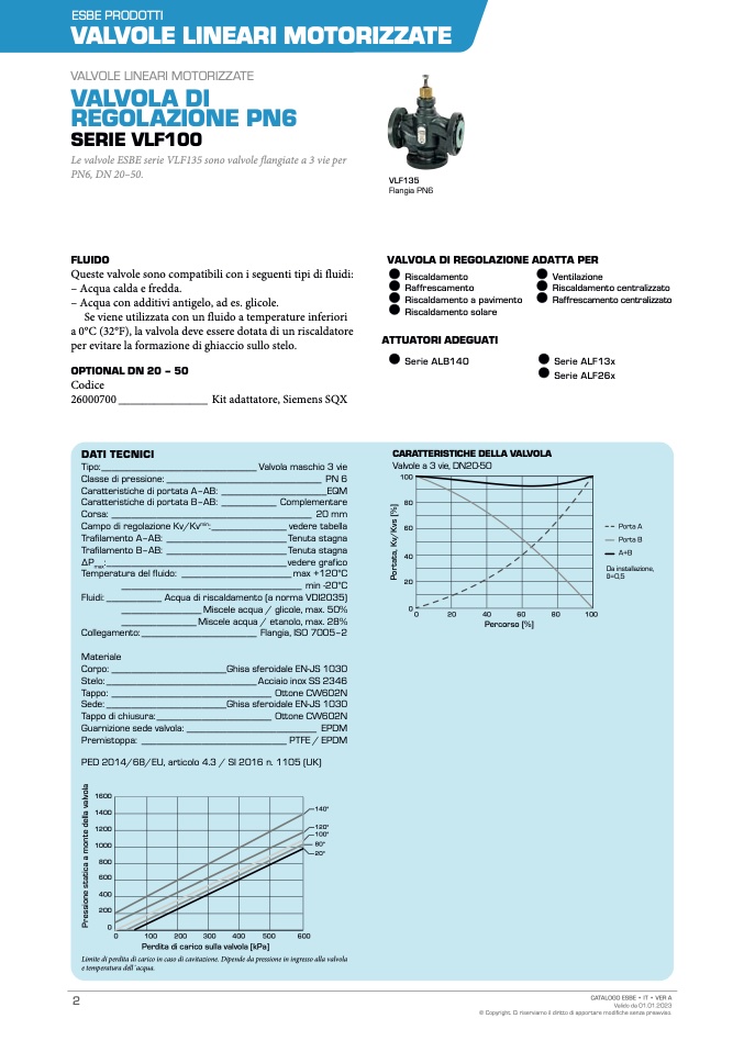 Le valvole ESBE serie VLF135 sono valvole flangiate a 3 vie per