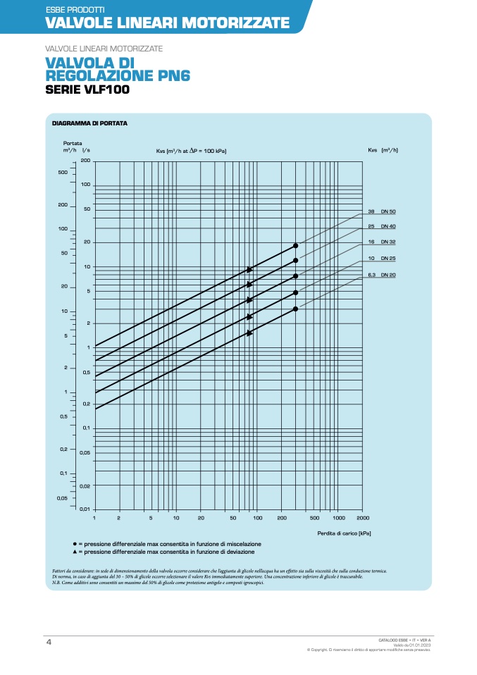 Di norma, in caso di aggiunta del 30 – 50% di glicole occorre selezionare il valore Kvs immediatamente superiore. Una concentrazione inferiore di glicole è trascurabile.