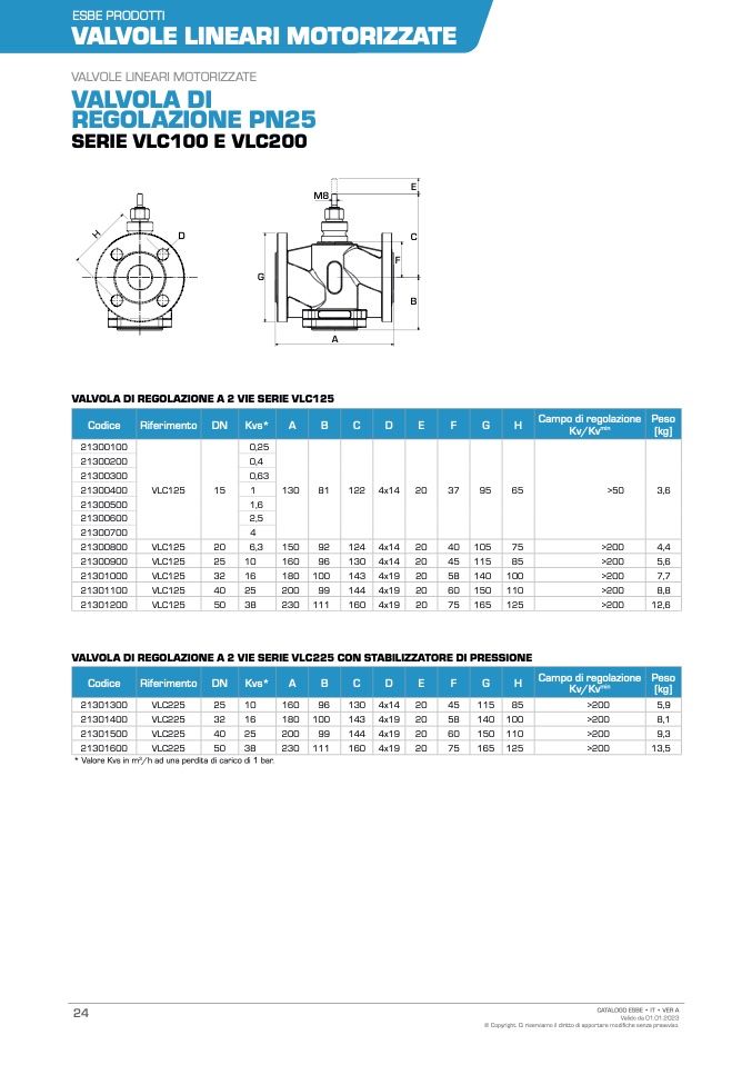 VALVOLA DI REGOLAZIONE A 2 VIE SERIE VLC125