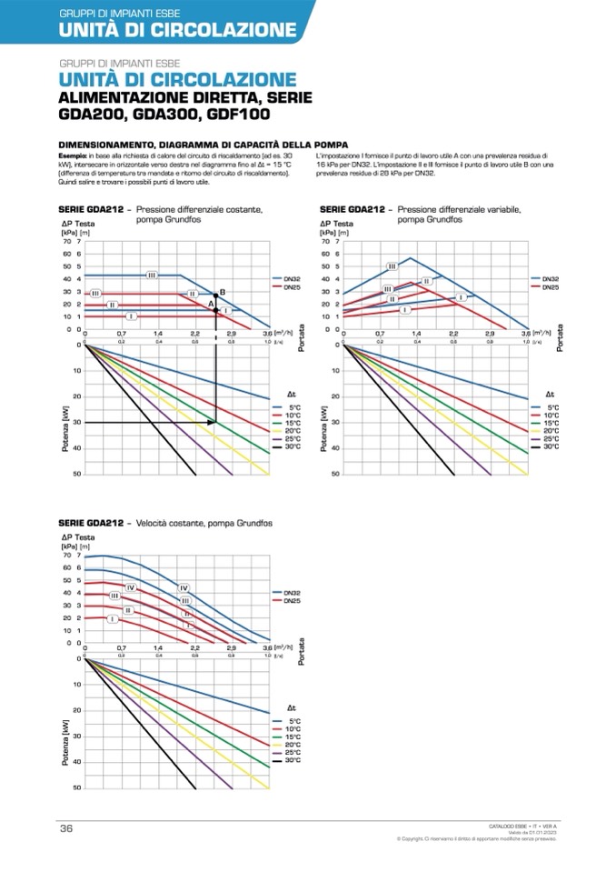 16 kPa per DN32. L’impostazione II e III fornisce il punto di lavoro utile B con una