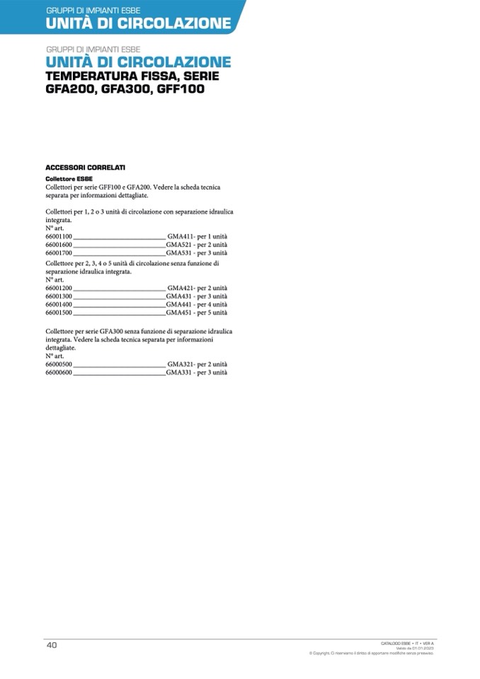 Collettori per serie GFF100 e GFA200. Vedere la scheda tecnica
