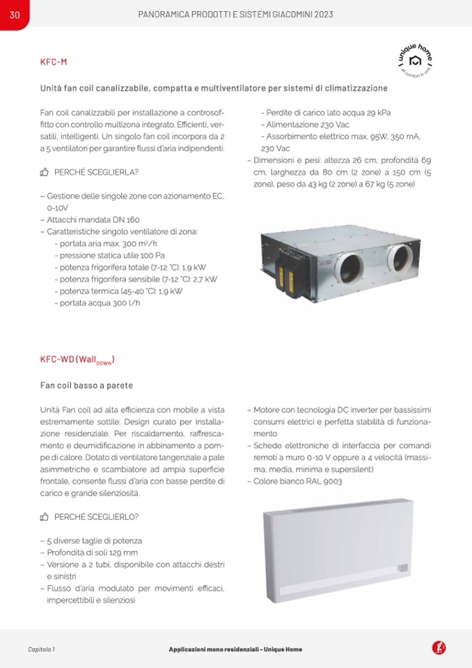 satili, intelligenti. Un singolo fan coil incorpora da 2