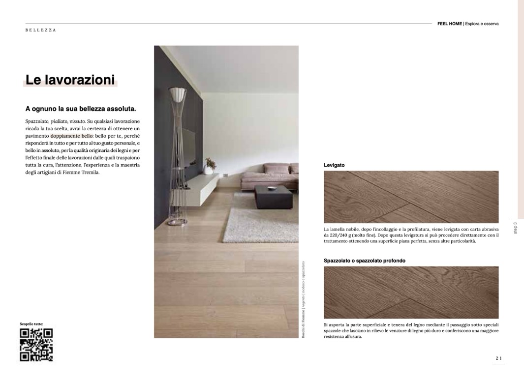 spazzole che lasciano in rilievo le venature di legno più duro e conferiscono una maggiore