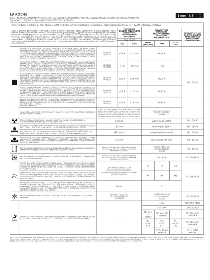 CARATTERISTICHE TECNICHE - TECHNICAL CHARACTERISTICS - CARACTERISTIQUES TECHNIQUES - TECHNISCHE EIGENSCHAFTEN - CARACTERÍSTICAS TÉCNICAS