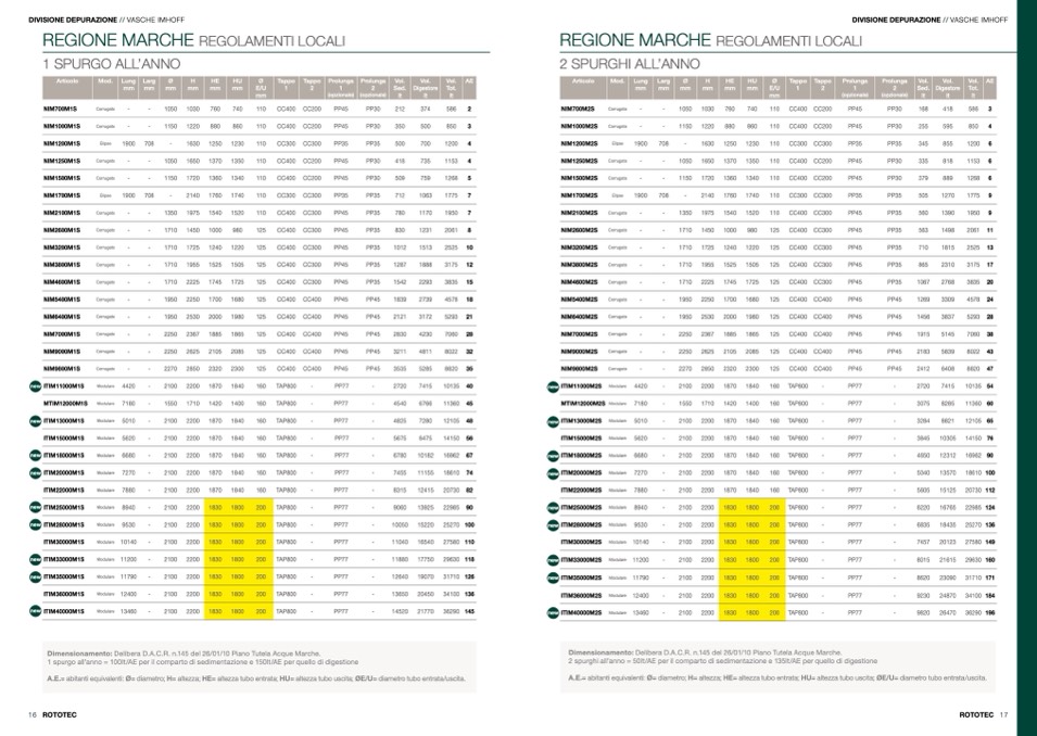 Dimensionamento: Delibera D.A.C.R. n.145 del 26/01/10 Piano Tutela Acque Marche.