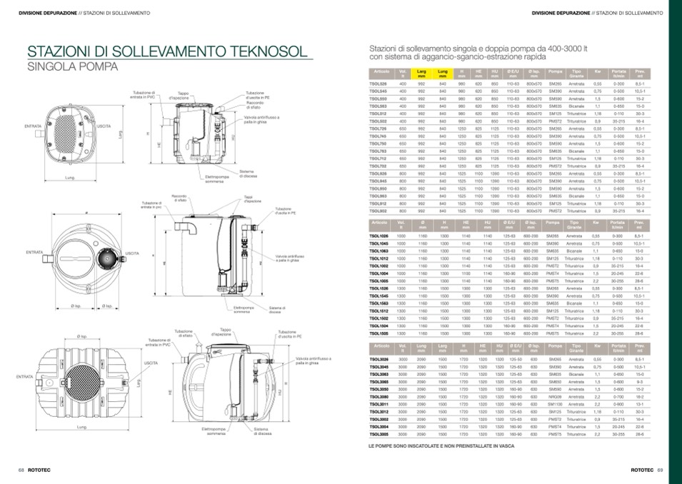 Stazioni di sollevamento singola e doppia pompa da 400-3000 lt