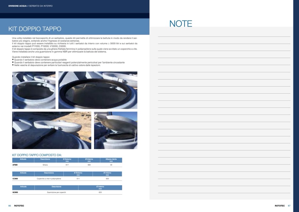 Il kit doppio tappo è composto da una ghiera filettata femmina in polipropilene sulla quale viene avvitato un coperchio a vite.