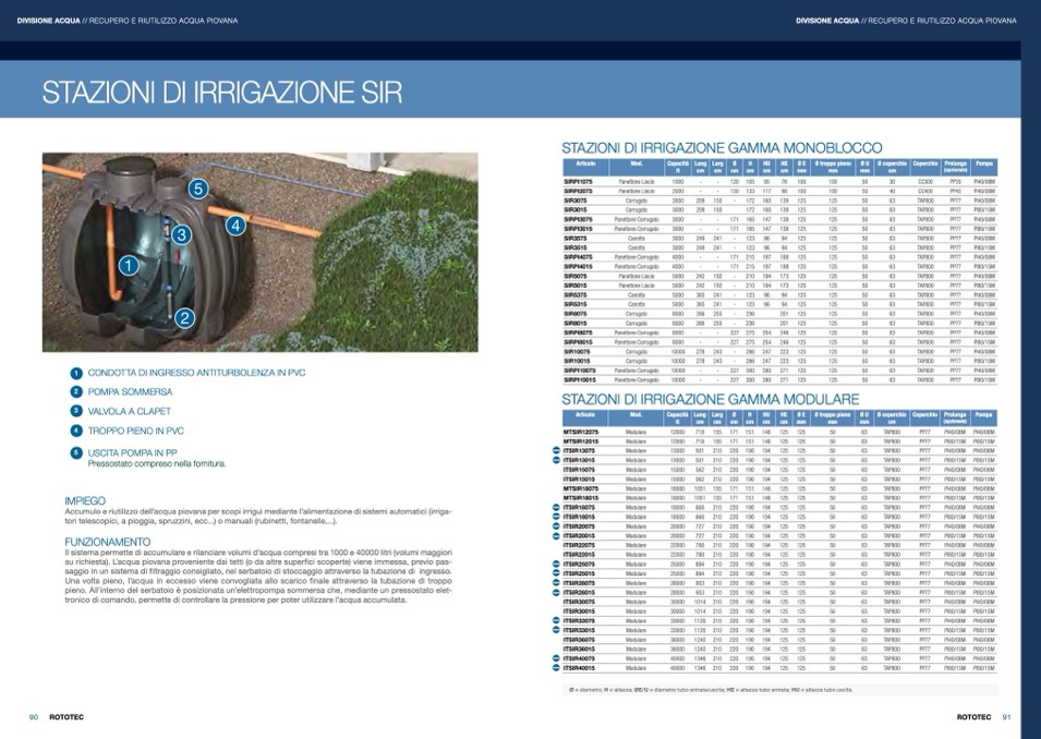 Il sistema permette di accumulare e rilanciare volumi d’acqua compresi tra 1000 e 40000 litri (volumi maggiori