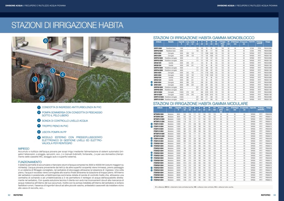 Il sistema permette di accumulare e rilanciare volumi d’acqua compresi tra 3000 e 40000 litri (volumi maggiori su