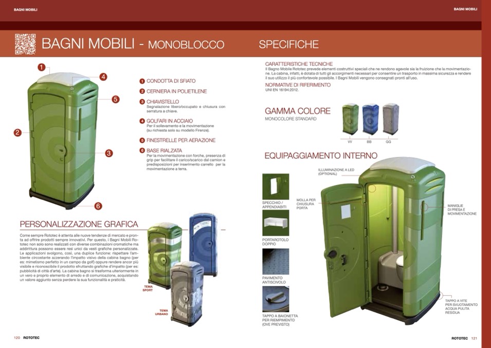 Il Bagno Mobile Rototec prevede elementi costruttivi speciali che ne rendono agevole sia la fruizione che la movimentazio-