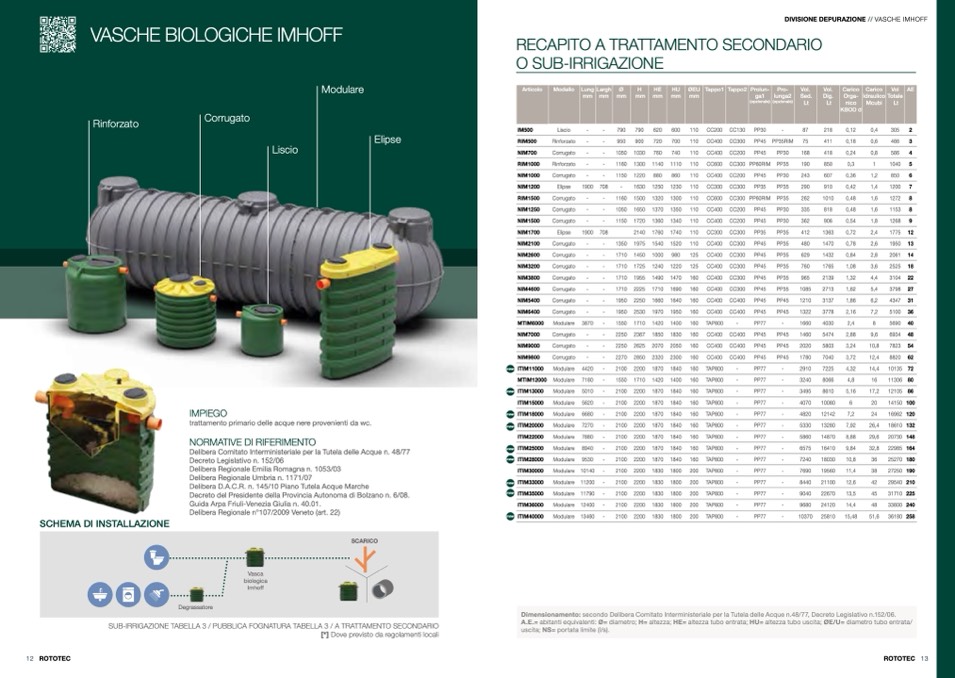 Dimensionamento: secondo Delibera Comitato Interministeriale per la Tutela delle Acque n.48/77, Decreto Legislativo n.152/06.