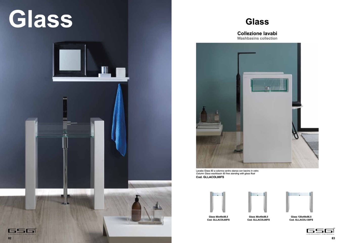 Lavabo Glass 80 a colonna centro stanza con bacino in vetro