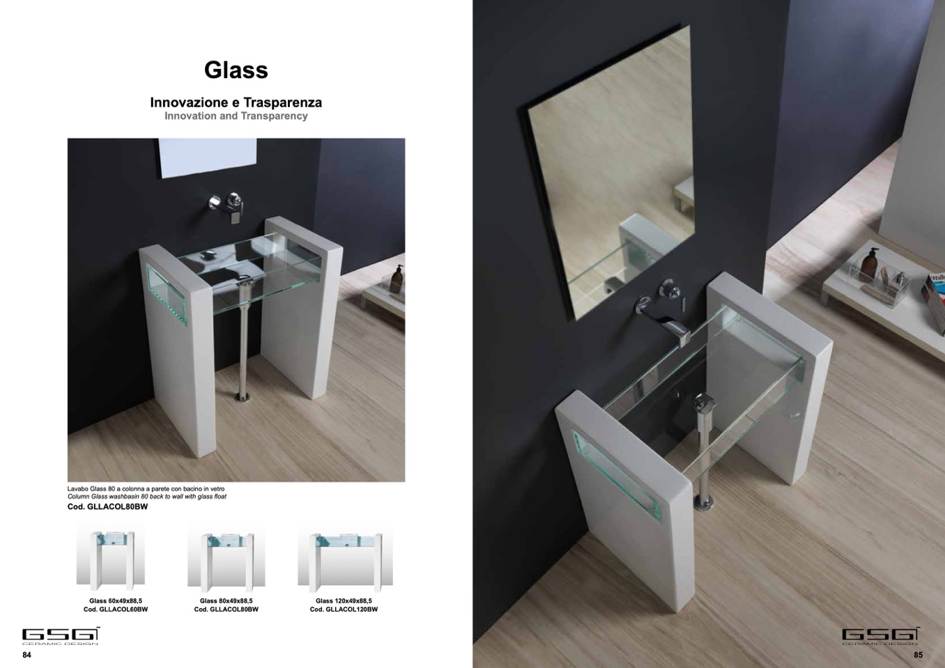 Lavabo Glass 80 a colonna a parete con bacino in vetro