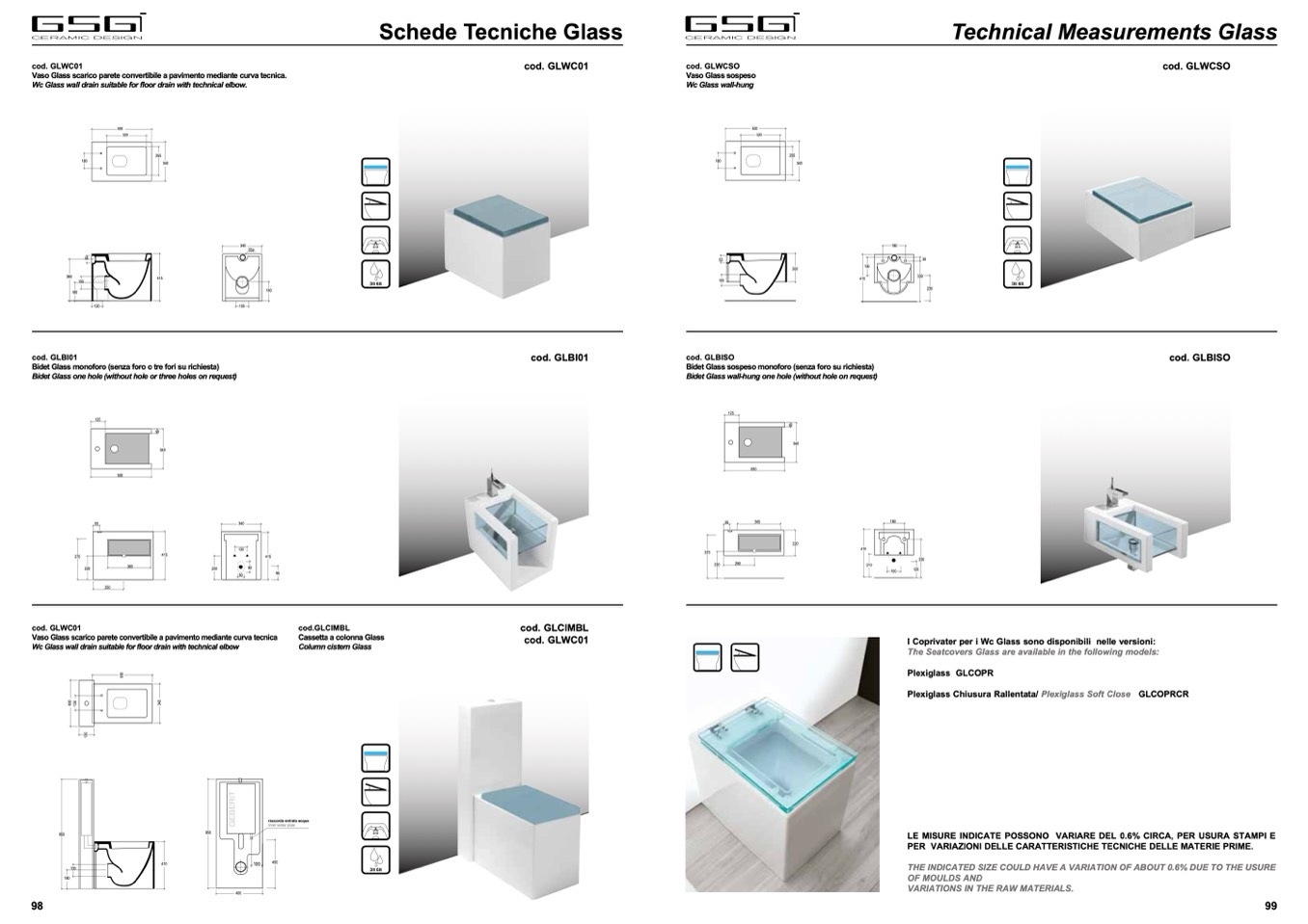I Coprivater per i Wc Glass sono disponibili nelle versioni: