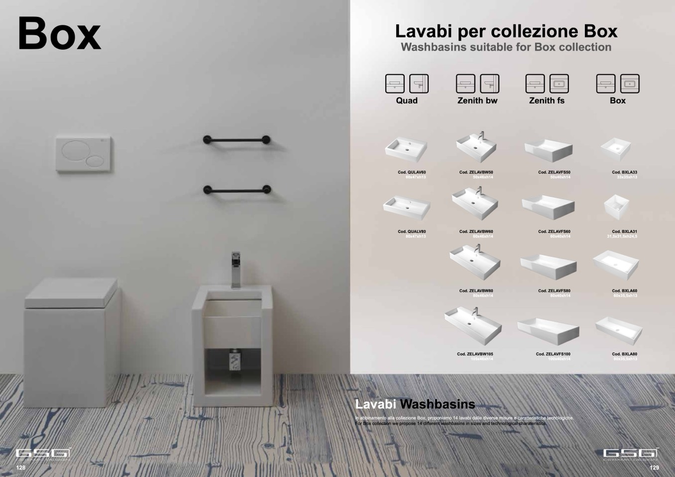 In abbinamento alla collezione Box, proponiamo 14 lavabi dalle diverse misure e caratteristiche tecnologiche.