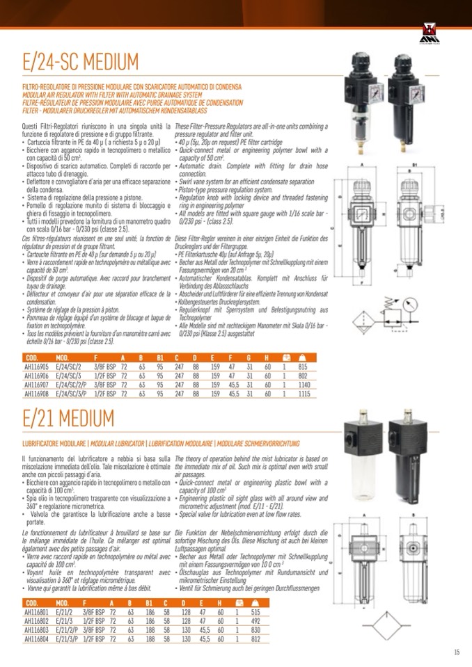 Questi Filtri-Regolatori riuniscono in una singola unità la