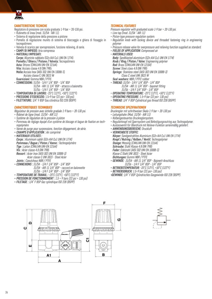 • CONNESSIONI: 31/S4 - 1/4 F 1/4” BSP - 1/4” BSP
