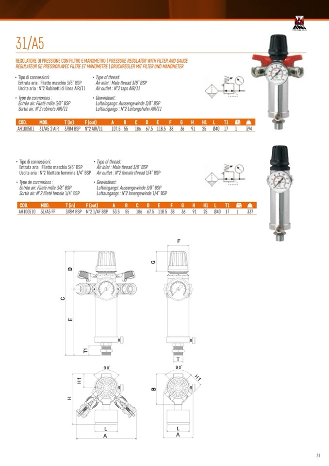 REGOLATORE DI PRESSIONE CON FILTRO E MANOMETRO | PRESSURE REGULATOR WITH FILTER AND GAUGE