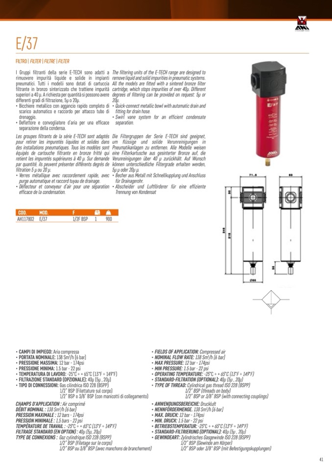 I Gruppi filtranti della serie E-TECH sono adatti a