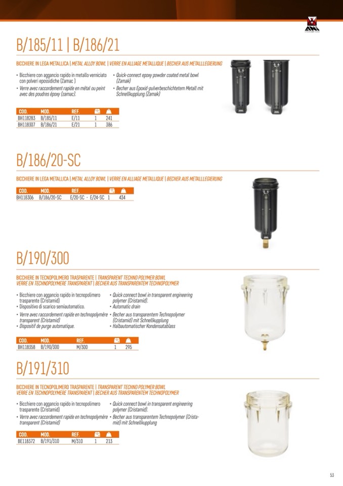 • Quick connect bowl in transparent engineering