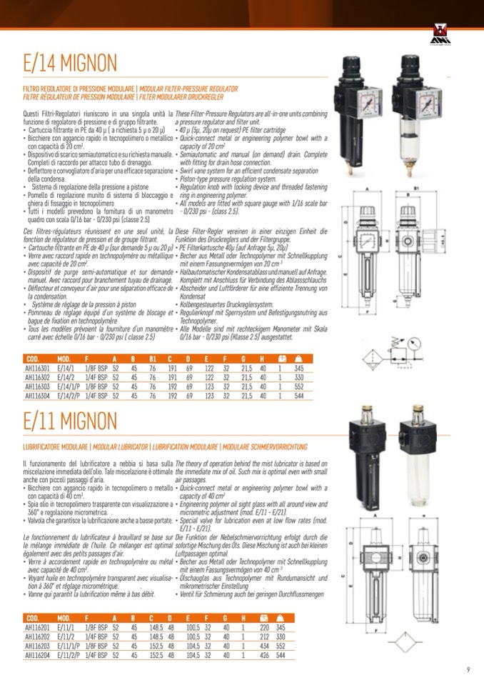 FILTRO REGOLATORE DI PRESSIONE MODULARE | MODULAR FILTER-PRESSURE REGULATOR