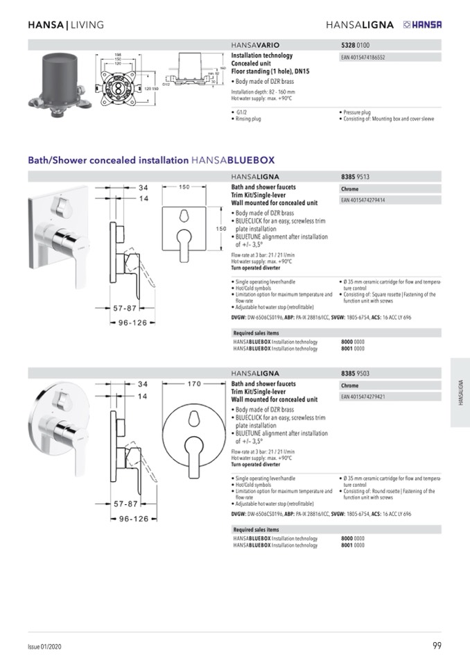 • Ø 35 mm ceramic cartridge for flow and tempera-