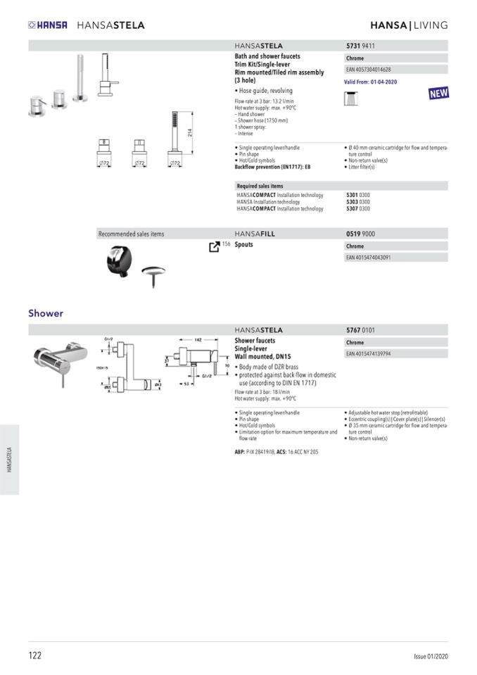 • Ø 40 mm ceramic cartridge for flow and tempera-