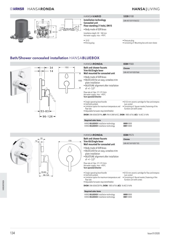 • Ø 35 mm ceramic cartridge for flow and tempera-