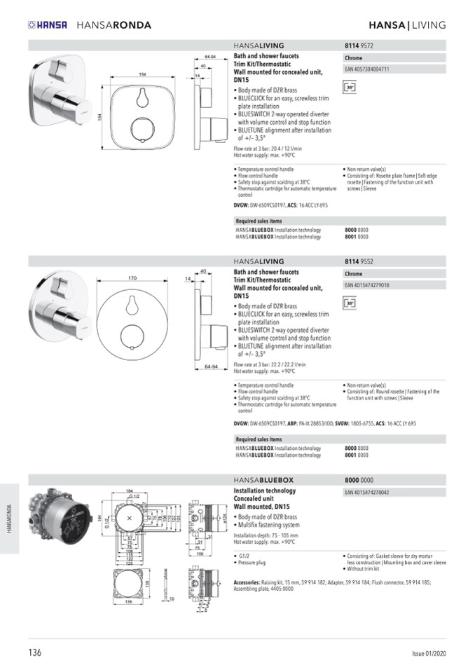 Accessories: Raising kit, 15 mm, 59 914 182; Adapter, 59 914 184; Flush connector, 59 914 185;