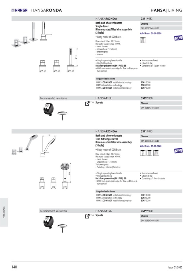 • Ø 40 mm ceramic cartridge for flow and tempera-
