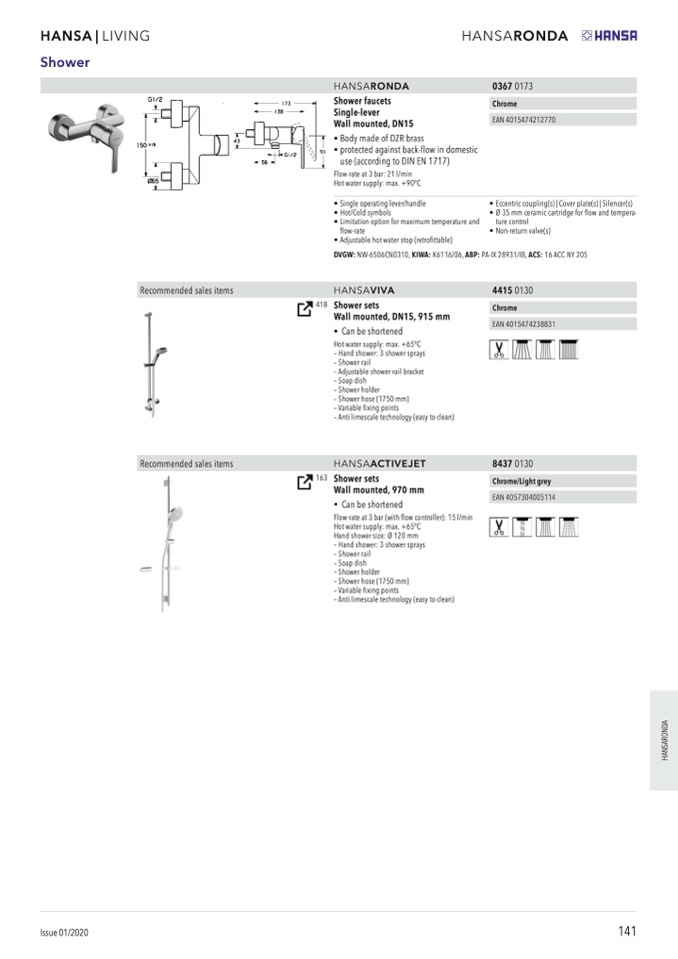 • Ø 35 mm ceramic cartridge for flow and tempera-