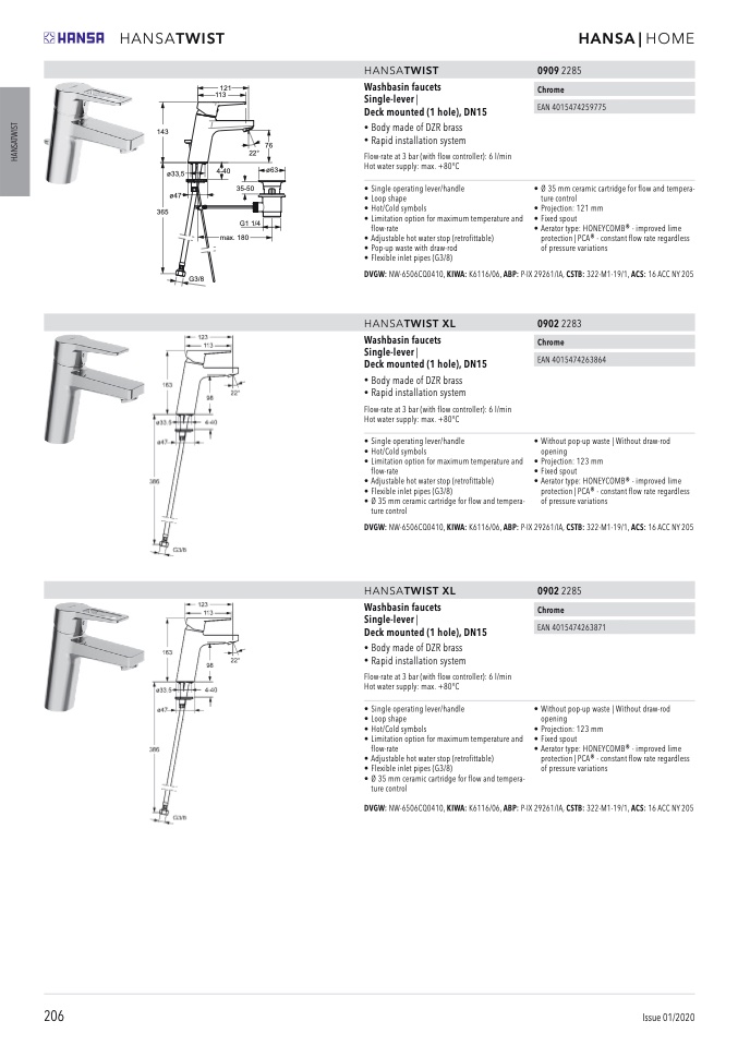 DVGW: NW-6506CQ0410, KIWA: K6116/06, ABP: P-IX 29261/IA, CSTB: 322-M1-19/1, ACS: 16 ACC NY 205