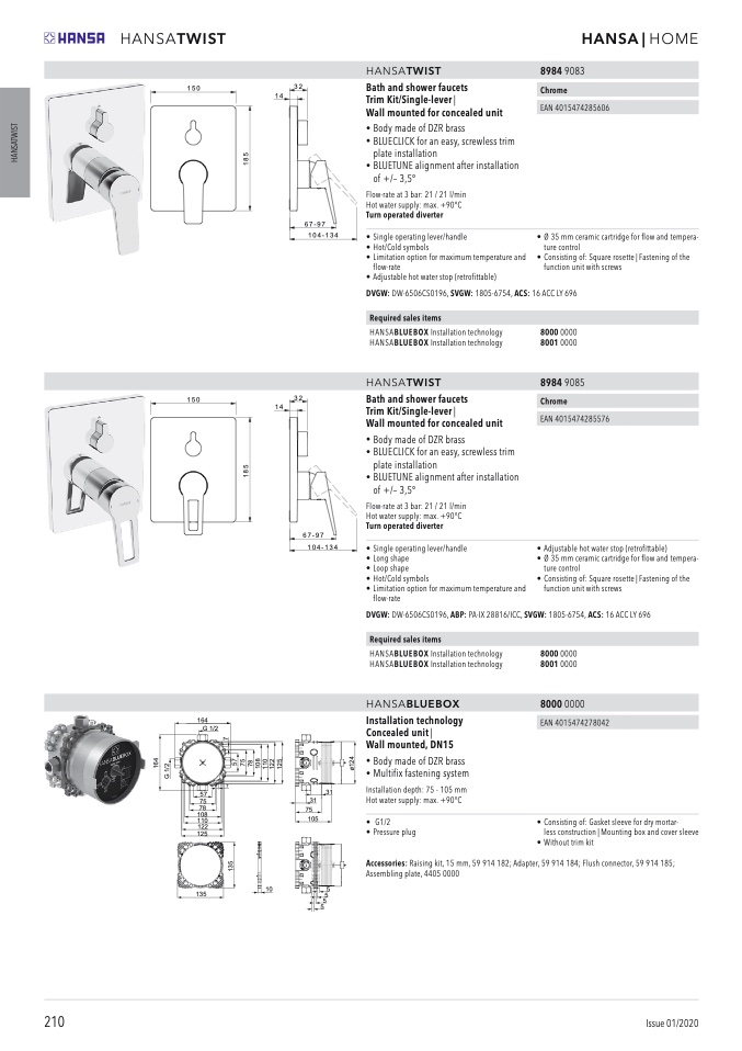 Accessories: Raising kit, 15 mm, 59 914 182; Adapter, 59 914 184; Flush connector, 59 914 185;
