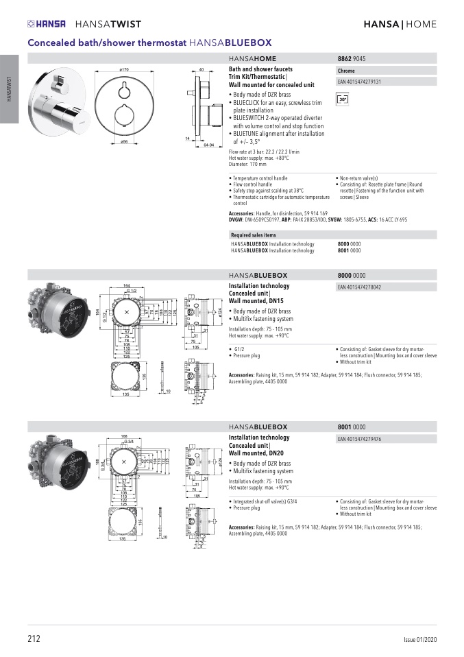 Accessories: Raising kit, 15 mm, 59 914 182; Adapter, 59 914 184; Flush connector, 59 914 185;