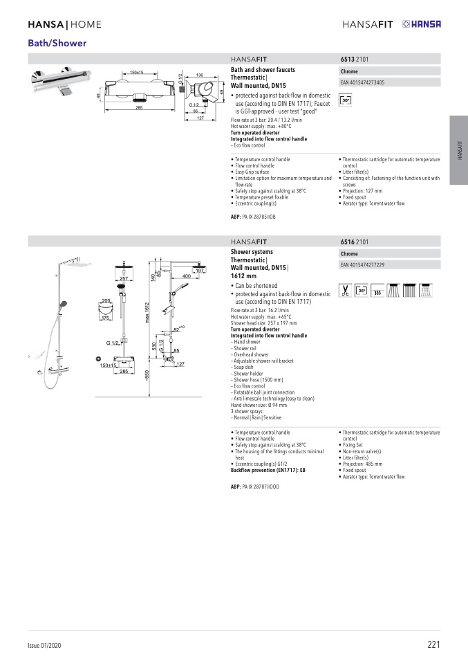 Flow-rate at 3 bar: 20.4 / 13.2 l/min
