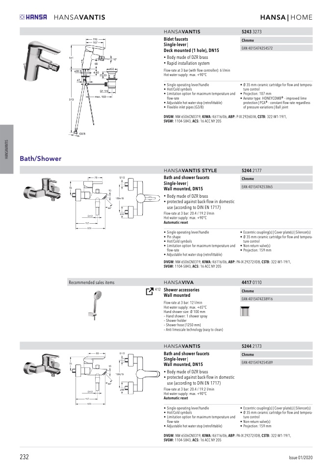 DVGW: NW-6506CN0319, KIWA: K6116/06, ABP: PA-IX 29272/IDB, CSTB: 322-M1-19/1,