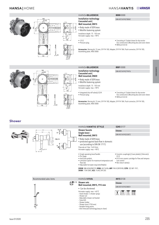 Accessories: Raising kit, 15 mm, 59 914 182; Adapter, 59 914 184; Flush connector, 59 914 185;