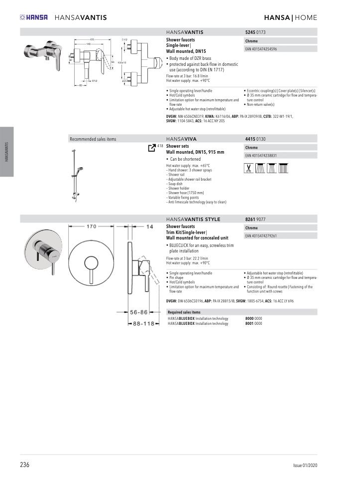 • Ø 35 mm ceramic cartridge for flow and tempera-