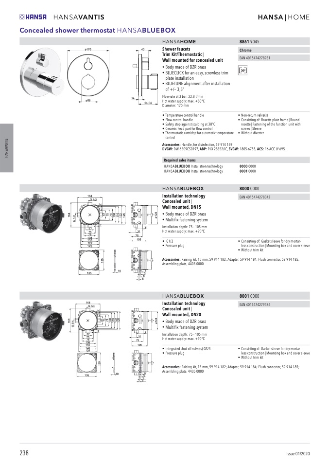 Accessories: Raising kit, 15 mm, 59 914 182; Adapter, 59 914 184; Flush connector, 59 914 185;