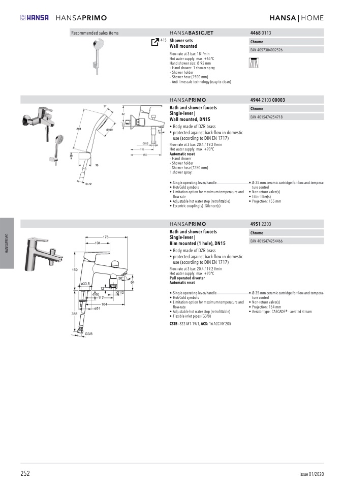 Flow-rate at 3 bar: 20.4 / 19.2 l/min