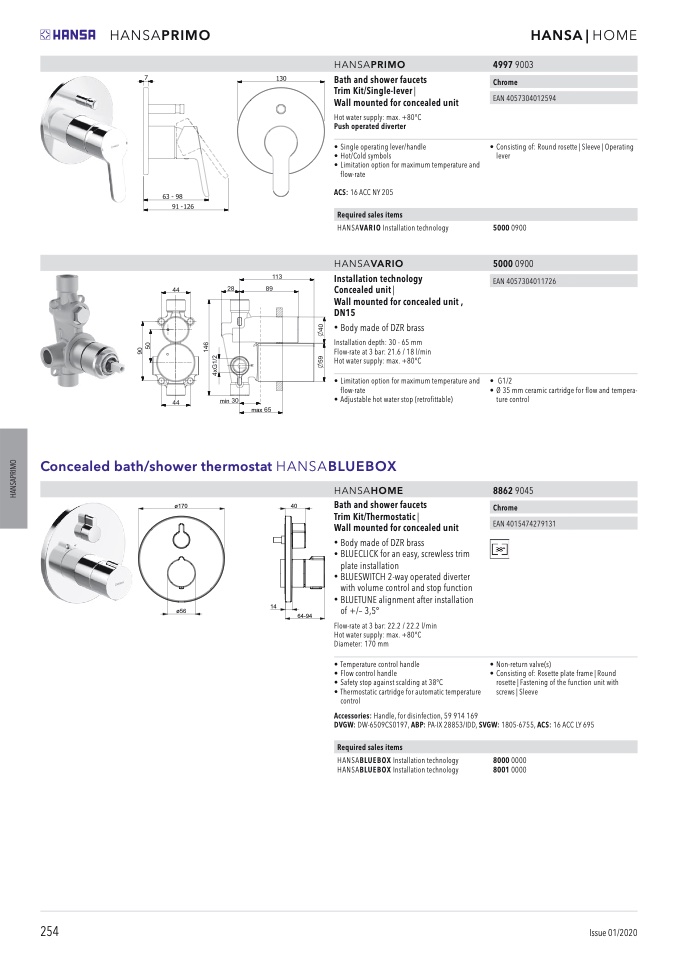 • Ø 35 mm ceramic cartridge for flow and tempera-
