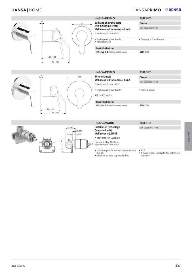• Ø 35 mm ceramic cartridge for flow and tempera-
